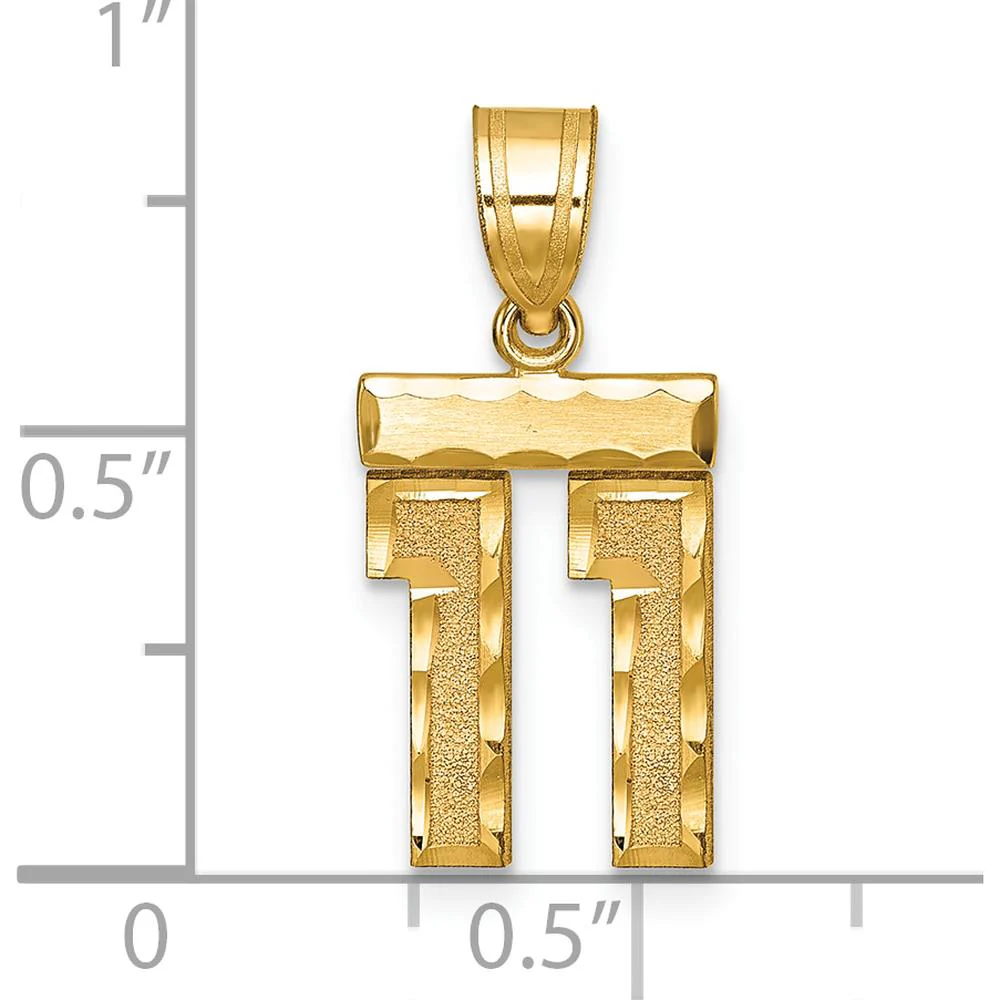 14K Yellow Gold Small Brushed Diamond-Cut Number 11 Charm Pendant by Oro Pregiato